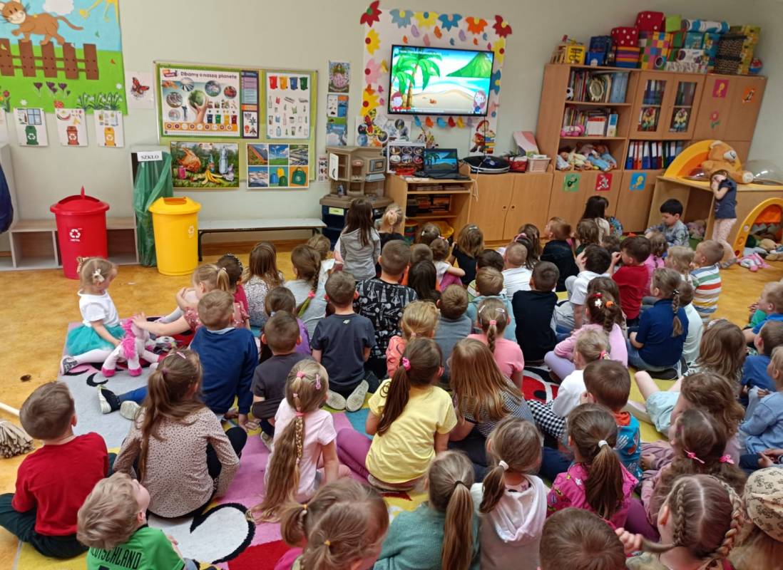 Doskonałą i szczegółową wiedzą na tematy ekologiczne podczas spotkania wykazali się również starsi koledzy, którzy zaimponowali 3-latkom, udzielając odpowiedzi na trudne pytania przygotowane przez prowadzących, na koniec bezbłędnie pomogli maluszkom w segregacji odpadów. Nasze przedszkolaki wiedzą, że o środowisko w którym żyjemy trzeba dbać każdego dnia i rozumieją hasło „ Zdrowa Ziemia, zdrowi ludzie”.
