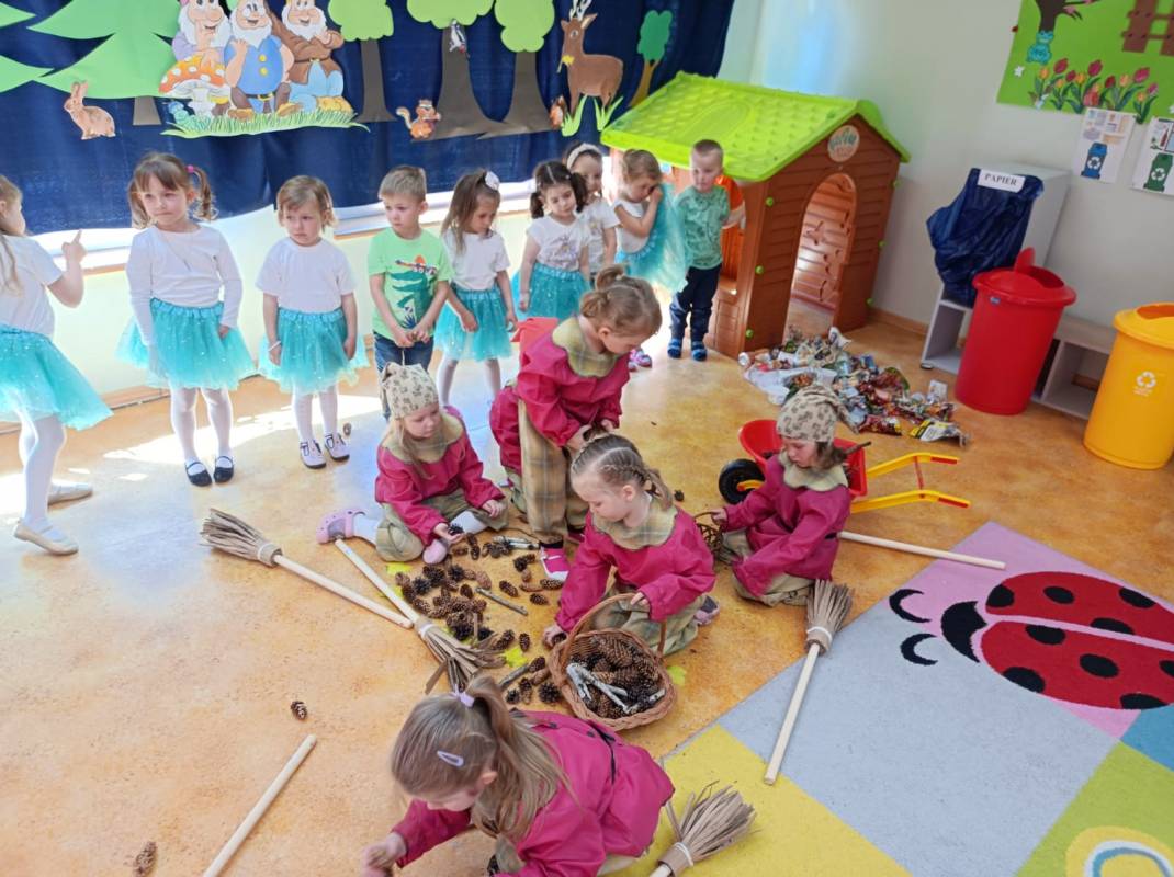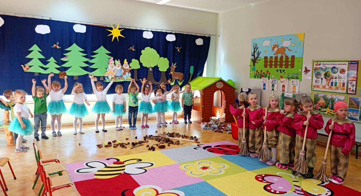 do utrwalenia i podsumowania wiedzy na temat ochrony przyrody. Maluszki dużo wiedzą na temat zachowań ekologicznych i stosują je na co dzień np. gaszą światło w po wyjściu z łazienki, używają oszczędnie papier, starają się oszczędzać wodę podczas mycia ząbków i rączek, a śmieci wyrzucają do kosza.