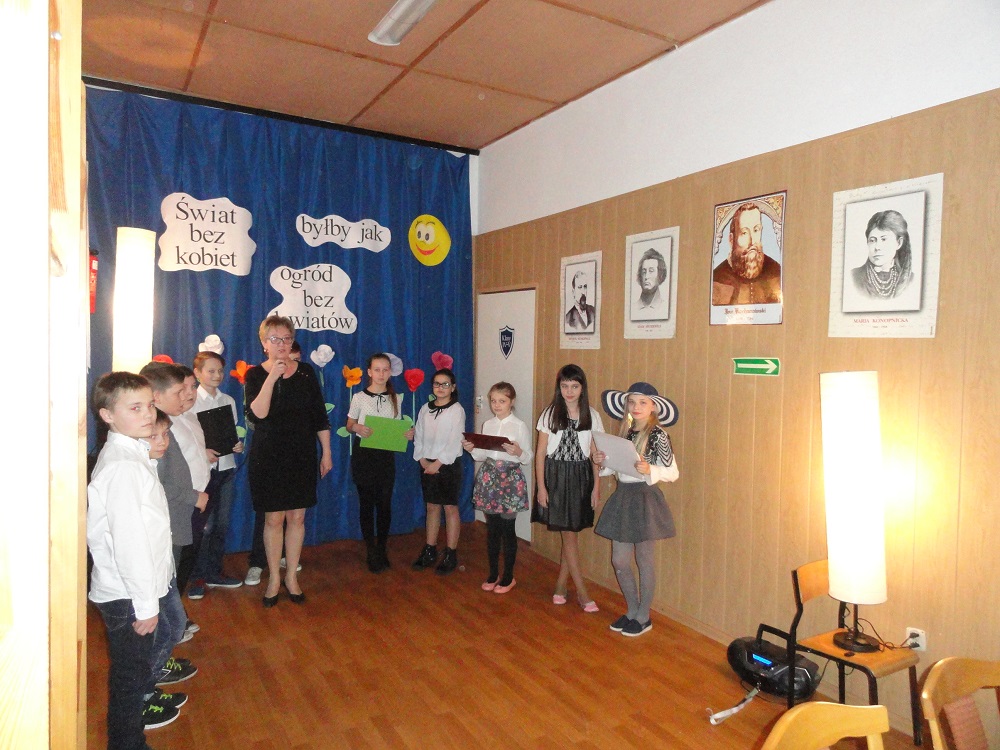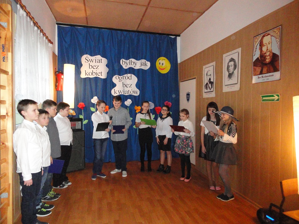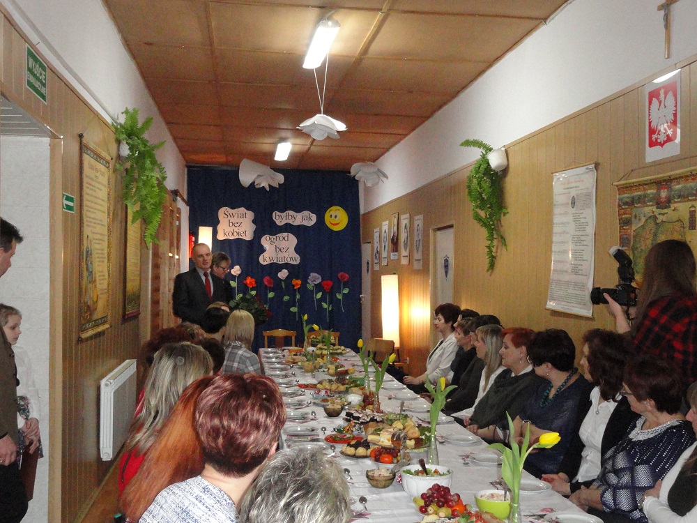 Wszystkie panie przybyłe na spotkanie z racji Dnia Kobiet powitała Pani Dyrektor – Emilia Sobczyk. Obecnością swoją uroczystość uświetnił Wójt Gminy Gorzkowice – Pan Alojzy Włodarczyk, który złożył kobietom życzenia i wręczył kwiaty. W części oficjalnej uczniowie miejscowej szkoły zaprezentowali program artystyczny. W humorystyczny sposób zdefiniowali słowo „kobieta” i przedstawili różne typy płci żeńskiej, od sportsmenki, przez kokietkę, kumpelę, po feministkę. Nie zabrakło przebojów z kobietą w roli głównej, jak chociażby „Babę zesłał Bóg” czy „Baby, ach te baby”. Chłopcy, jak na dżentelmenów przystało, złożyli paniom życzenia.