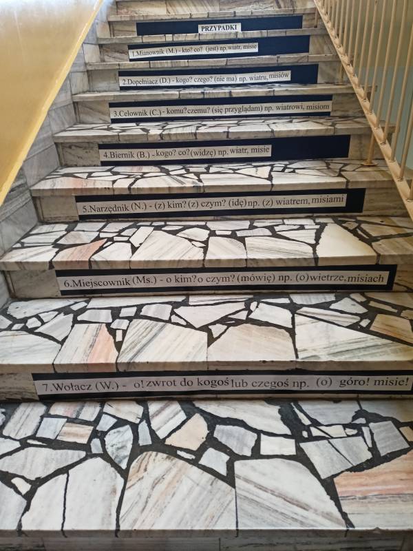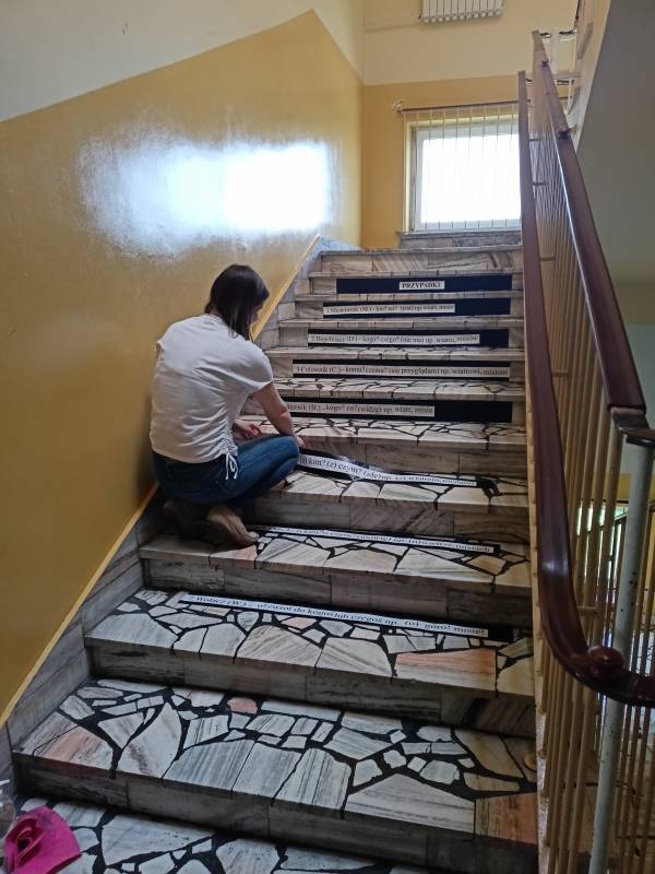 Idąc za przykładem Rady Rodziców zrodził się kolejny pomysł na pożyteczne spędzanie przerw przez uczniów. Jak już wiemy w Szkole Podstawowej w Gorzkowicach pojawiły się komplety naklejek o tematyce matematycznej. Przyszła więc pora na język polski, a tak dokładniej „Przypadki”. Tym razem jednak komplet naklejek to praca własna pod przewodnictwem pani Agnieszki Kubiak. Za pomoc przy mocowaniu naklejek należą się podziękowania uczennicom z klasy 8c.