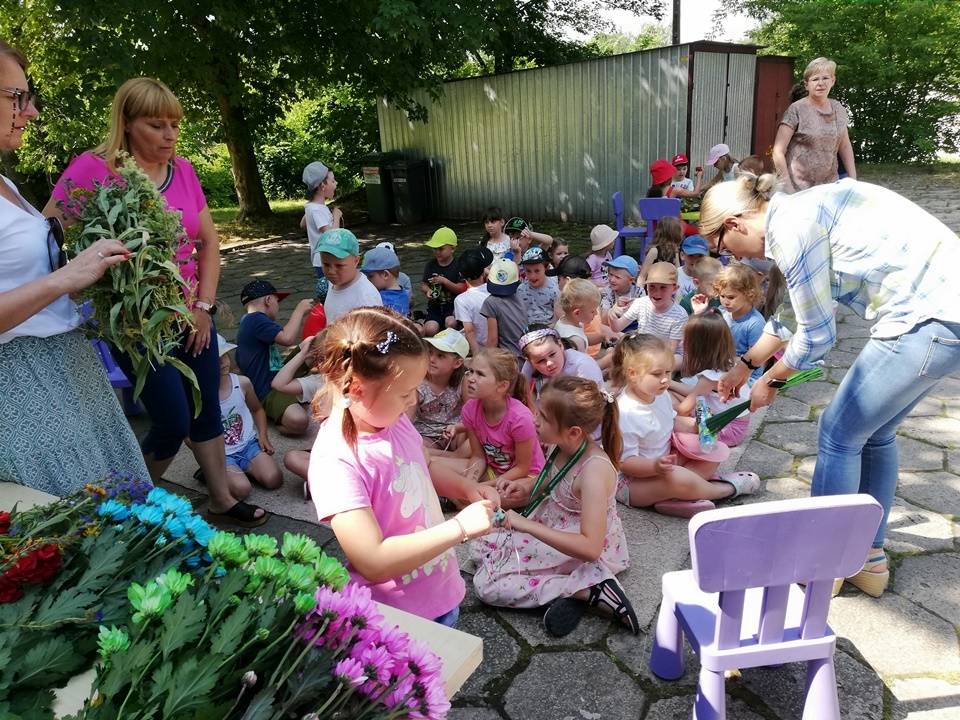 Noc Świętojańska jest świętem ustanowionym przez kościół katolicki. Obchodzimy ją co roku w nocy z 23 na 24 czerwca. Utarło się wiele zwyczajów, które towarzyszą obchodom Nocy Świętojańskiej. Jednym z nich jest wyplatanie i puszczanie wianków na wodę. O tradycjach związanych z obchodami Nocy Świętojańskiej i sposobach zaplatania wianków opowiadała dzisiaj przedszkolakom z Przedszkola Samorządowego w Gorzkowicach pani Joanna Ziemba.