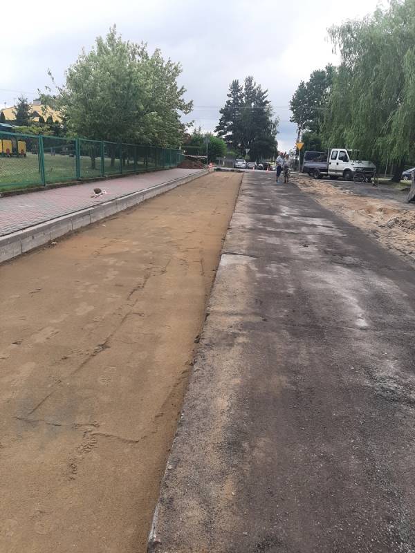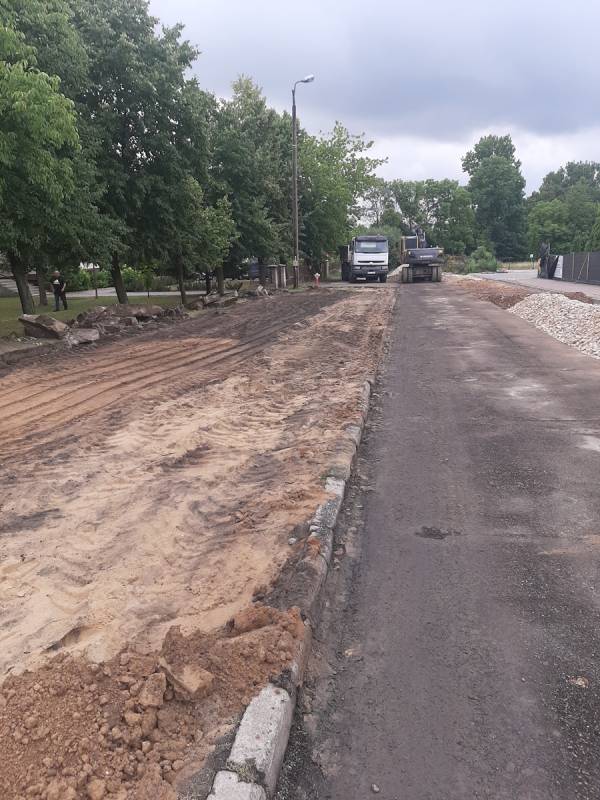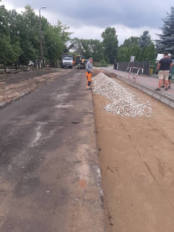 Prace remontowe w ul. Kwiatowej nabierają tempa. Aktualnie jest uzupełniana warstwa podbudowy części jezdnej i poboczy.