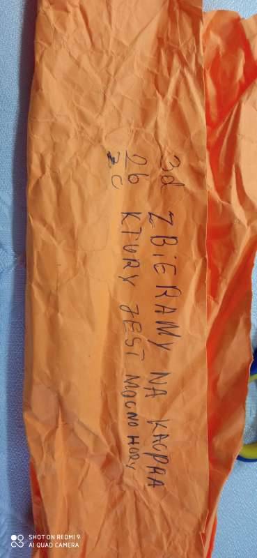 Najmłodsi uczniowie naszej szkoły dodatkowo postanowili dołożyć swoją cegiełkę. Podczas drugiego dnia otrzymaliśmy tajemnicze zawiniątko, które zawierało treściwą informację i ... pieniążki.