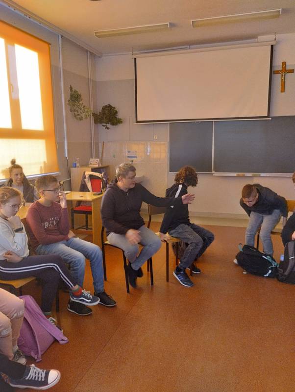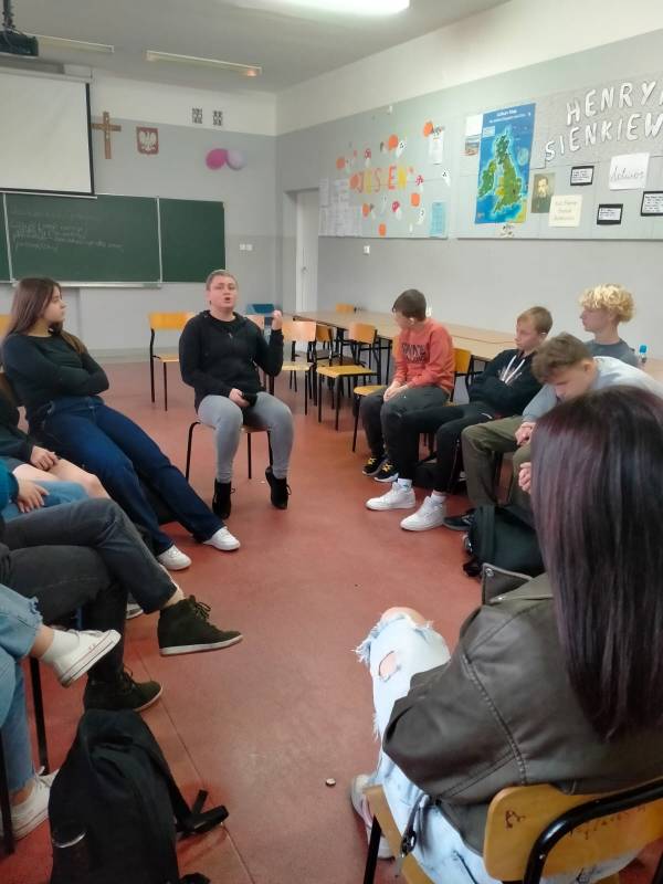 Zajęcia warsztatowe były dostosowane do potrzeb i możliwości uczniów, którzy chętnie i aktywnie w nich uczestniczyli, odpowiadali na zadawane pytania, dyskutowali i sami zadawali pytania. Uczniowie poznali mechanizmy uzależnienia oraz konsekwencje jakie niesie zbyt wczesne sięganie po używki.